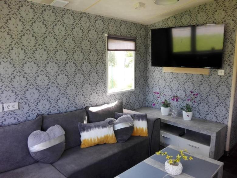 Domek holenderski. Featuring a private entrance, this air-conditioned mobile home is comprised of 1 living room, 2 separate bedrooms and 1 bathroom with a shower and a hairdryer. Guests will find a stovetop, a refrigerator, kitchenware and an oven in the fully equipped kitchenette. The mobile home also has a barbecue. The mobile home offers a flat-screen TV, a coffee machine, a seating area, a wardrobe as well as lake views. The unit offers 3 beds. Domek holenderski - 5 osobowy. Powierzchnia pokoju ok.: 29 mkw.