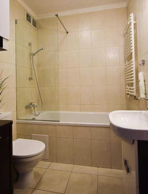 Apartament z 1 sypialnią. Featuring a private entrance, this apartment is comprised of 1 living room, 1 separate bedroom and 1 bathroom with a bath and a shower. The well-fitted kitchen has a stovetop, a refrigerator and kitchenware. The apartment features parquet floors, a seating area with a flat-screen TV, a washing machine, a tea and coffee maker as well as city views. The unit offers 4 beds. Apartament - 8 osobowy. Powierzchnia pokoju ok.: 55 mkw.