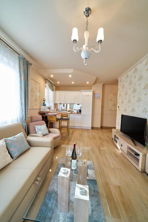 Apartament z 1 sypialnią. Boasting a private entrance, this apartment comes with 1 living room, 1 separate bedroom and 1 bathroom with a shower and a hairdryer. Guests can make meals in the kitchen that features a stovetop, a refrigerator, a dishwasher and an electric kettle. A sofa, a flat-screen TV, a wardrobe and a balcony are available in this apartment. The unit has 2 beds. Apartament - 4 osobowy. Powierzchnia pokoju ok.: 36 mkw.