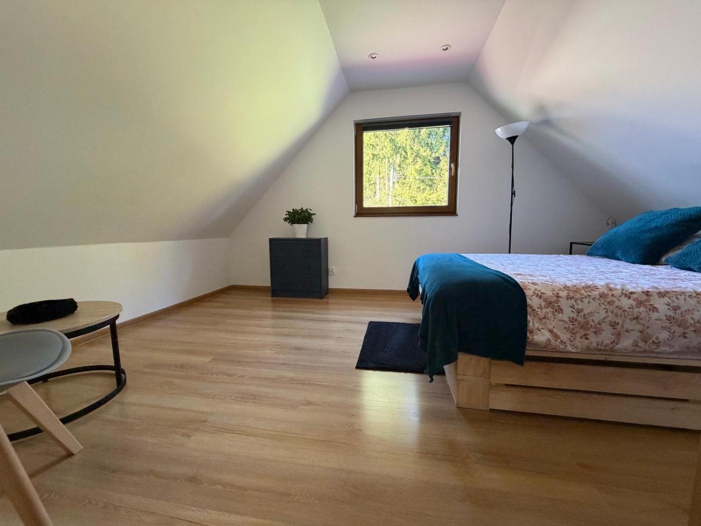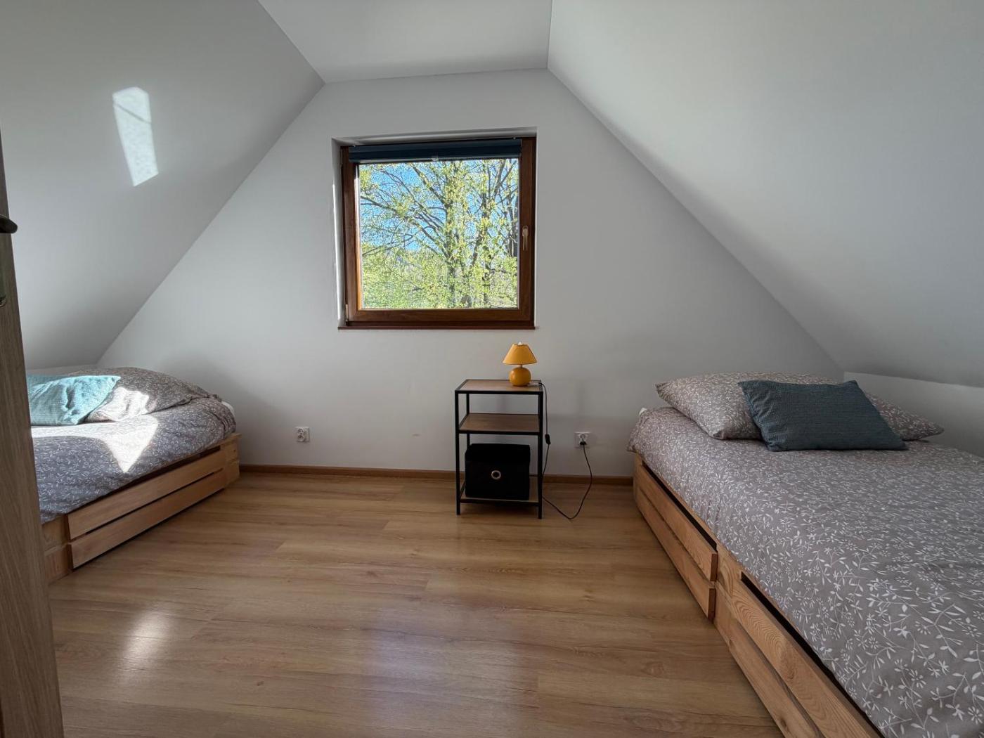 Dom z 2 sypialniami. The fireplace is the standout feature of this holiday home. Boasting a private entrance, this holiday home features a kitchenette, 2 bedrooms and 1 bathroom with a shower and a hairdryer. Guests will find a stovetop, a refrigerator, kitchenware and a microwave in the kitchenette. The holiday home also comes with a barbecue. Featuring a terrace with garden views, this holiday home also features a coffee machine and a flat-screen TV. The unit has 4 beds. Dom wakacyjny - 5 osobowy. Powierzchnia pokoju ok.: 70 mkw.