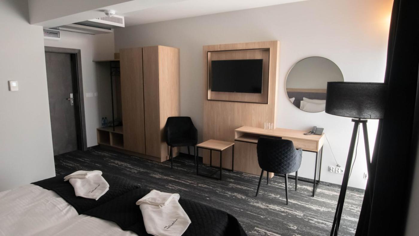 Pokój Dwuosobowy typu Standard z 1 lub 2 łóżkami. Ten klimatyzowany pokój dwuosobowy z 1 lub 2 łóżkami oferuje zestaw do parzenia kawy i herbaty oraz łazienkę z kabiną prysznicową i suszarką do włosów. Pozostałe udogodnienia w tym pokoju dwuosobowym z 1 lub 2 łóżkami obejmują szafę, ogrzewanie i telewizor z płaskim ekranem. Podłoga wyłożona została wykładziną. W tej opcji zakwaterowania do dyspozycji gości są 2 łóżka. Pokój Dwuosobowy z 1 lub 2 łóżkami - 3 osobowy. Powierzchnia pokoju ok.: 22 mkw. ;