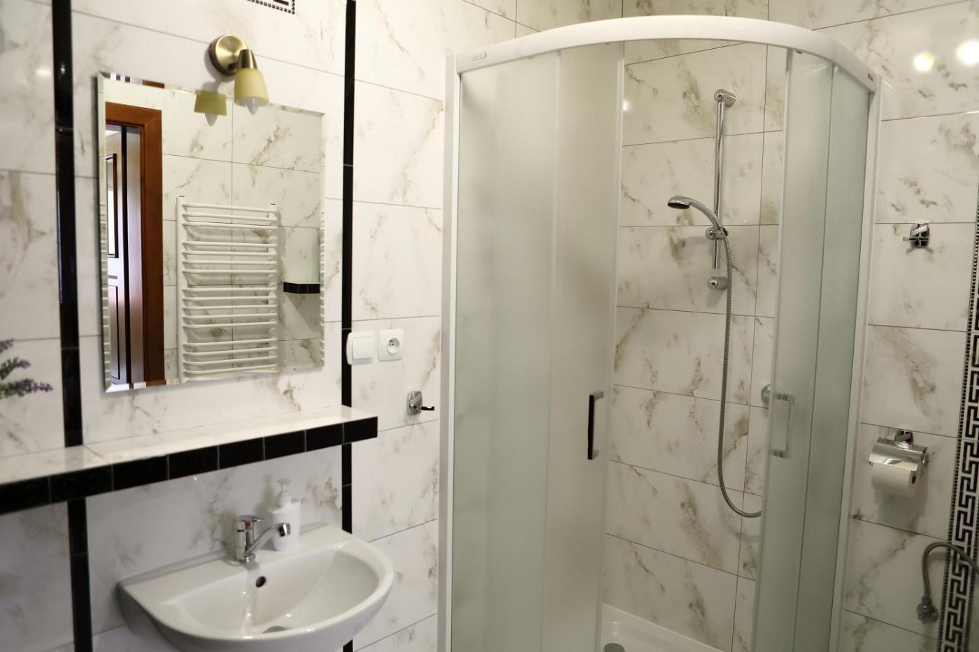Pokój Czteroosobowy z łazienką. The quadruple room offers heating, as well as a private bathroom featuring a shower. The quadruple room provides a flat-screen TV, a wardrobe, an electric kettle, a barbecue as well as garden views. The unit offers 4 beds. Pokój Czteroosobowy - 4 osobowy. Powierzchnia pokoju ok.: 20 mkw. ;