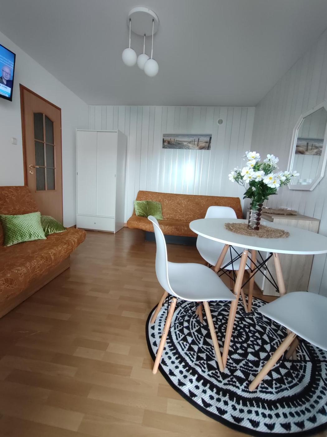 Apartament z 2 sypialniami. This apartment comprises 2 bedrooms, kitchen, a terrace and 2 bathrooms with a shower. The well-fitted kitchen features a stovetop, a refrigerator, kitchenware and a microwave. The apartment provides a flat-screen TV, a wardrobe, an electric kettle, a high chair for children as well as garden views. The unit offers 3 beds. Apartament - 6 osobowy. Powierzchnia pokoju ok.: 40 mkw.